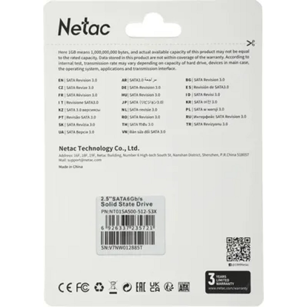 носитель информации Накопитель SSD Netac SATA III 512Gb SA500 2.5" RTL (NT01SA500-512-S3X)
