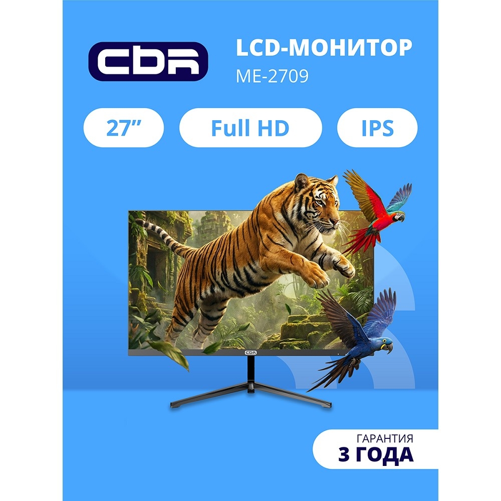 Монитор CBR LCD Монитор 27" ME-2709, IPS, FHD 1920x1080, 100Гц, Динамики 2*3W, 1*DP, 1*HDMI, внешний БП, FreeSync, черный, кабель HDMI 1.5м в комплекте LCD-ME2709-OPC